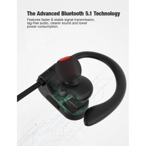 Bluetooth Headphones,Wireless Earbuds IPX7 Waterproof Sports Earphones with Mic HD Stereo Sweatproof in-Ear Earbuds Gym Running Workout 8 Hour Battery Noise Cancelling Headsets Black