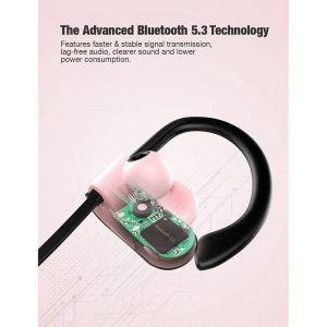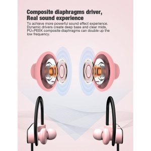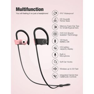 Bluetooth Headphones, Wireless Headphones IPX7 Waterproof Sports Earbuds 15H Playtime with Mic HD Stereo Sound Sweatproof in-Ear Earphoones Sound Isolation Headsets Gym Running Workout Pink