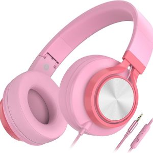 AILIHEN C8 Girls Headphones, On-Ear Headphones Wired with Microphone and Volume Control Foldable Corded Stereo 3.5mm Headset for Girls School Chromebook Laptop Computer PC Tablets Travel (Pink)