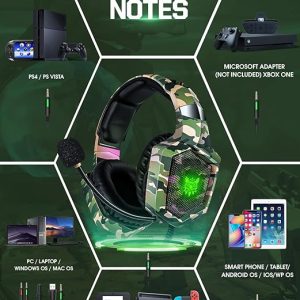 HomeHeadphone ProductsHeadphones ProductsGaming HeadsetGaming Headset with Microphone, Gaming Headphones for PS4 PS5 Xbox One PC with LED Lights, Playstation Headset with Noise Reduction 7.1 Surround Sound Over-Ear and Wired 3.5mm Jack