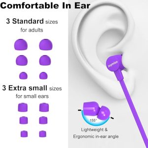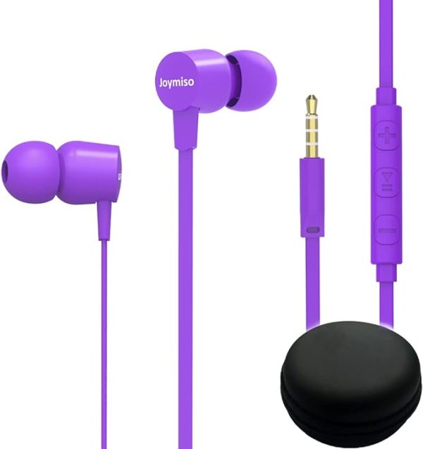 Joymiso Tangle Free Earbuds are designed for kids and women with small ears, offering a comfortable and lightweight fit. These in-ear headphones come with a flat cable that prevents tangling and includes a convenient carrying case for easy storage. The wired earphones feature a built-in microphone and volume control, making them ideal for use with cell phones and laptops. Their ergonomic design ensures long-lasting comfort, while the clear sound quality enhances listening experiences. Perfect for everyday use, they provide a practical and stylish audio solution.
