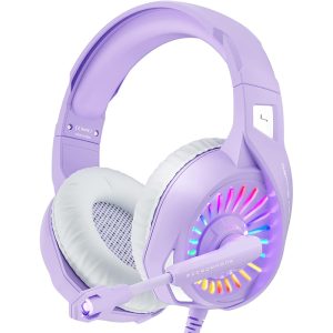 Gaming Headset with Microphone, Compatible with PS4 PS5 Xbox One PC Switch, Over-Ear Gamer Headphones,RGB LED Light, Noise Canceling Mic, Stereo Surround Sound Purple