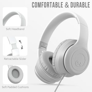 rockpapa L22 Wired Headphones for Kids Girls Boys Women with Microphone, Foldable Stereo 3.5mm Corded Headphones for School Classroom Chromebooks Computer Laptop Phone Airplane (Grey)