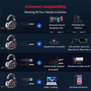 Gaming Headset with Microphone, Compatible with PS4 PS5 Xbox One PC Switch, Over-Ear Gamer Headphones,RGB LED Light, Noise Canceling Mic, Stereo Surround Sound Purple