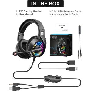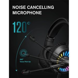 SENZER SG500 Surround Sound Pro Gaming Headset with Noise Cancelling Microphone – Soft Memory Foam Padding – Portable Foldable Headphones for PC, PS4, PS5, Xbox One, Switch – Black