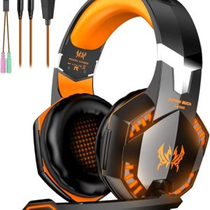VersionTECH. G2000 Gaming Headset, Bass Surround Gaming Headphones with Noise Cancelling Mic, LED Lights, Soft Memory Earmuffs for PS5/ PS4/ Xbox One Controller/Laptop/PC/Mac/Nintendo NES Games-Yellow