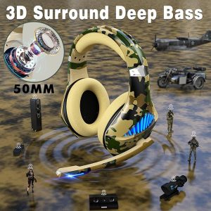 Gaming Headset for PS5 PS4 Xbox ONE Switch PC with Noise Cancelling Over-Ear Stereo Bass Surround Sound Gaming Headphone -Camo