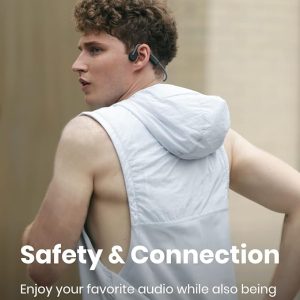 The SHOKZ OpenMove Open-Ear Bluetooth Sport Headphones in Grey offer bone conduction technology for a unique listening experience. Designed for runners and workout enthusiasts, these wireless earphones are sweatproof and provide comfort during intense activities. They come with a sticker pack for personalization. The open-ear design allows awareness of surroundings for safety. With easy Bluetooth connectivity, these headphones deliver clear sound and include a microphone for hands-free calls. The SHOKZ OpenMove headphones combine functionality, durability, and style, making them ideal for active lifestyles.