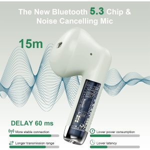 Wireless Earbuds, Bluetooth 5.3 Earbuds Stereo Bass, Bluetooth Headphones in Ear Noise Cancelling Mic, Earphones IP7 Waterproof Sports, 32H Playtime USB C Mini Charging Case Ear Buds for Android iOS
